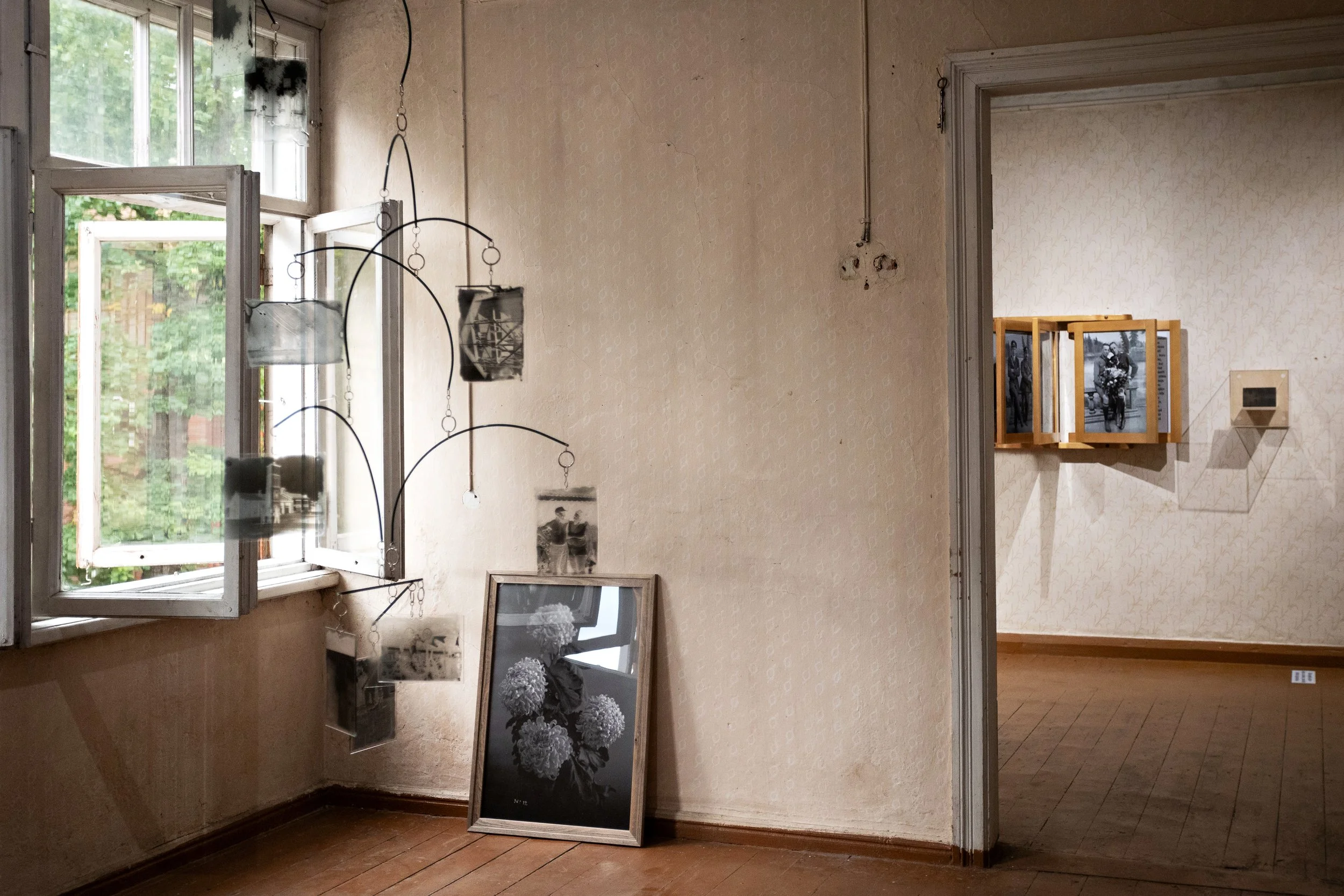 The Glass Mobile by Vladimirs Svetlovs (The Orbita Group) consists of the glass plates made during the Strenči Dry Plate Workshop led by Vladimirs together with Armands Andže (Baltic Analog Lab).