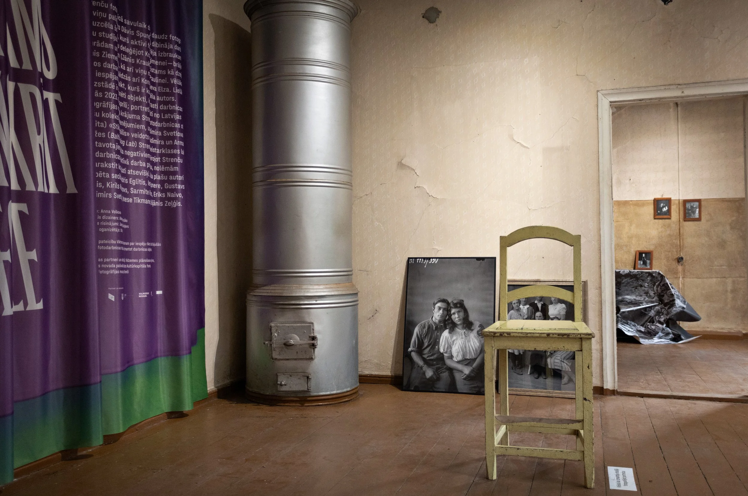 The exhibition took place in the former Strenči photo workshop premises from 27th August till 3rd September 2023 and showcased objects found on there in April of the same year. It also offered a display of portraits taken once in the photo workshop and printed from the scans of the glass plate collection of the Latvian Museum of Photography as well as The Glass Mobile a recent work by Vladimirs Svetlovs (Orbita) consisting of the glass plates made during the Strenči Dry Plate Workshop led by Vladimirs together with Armands Andže (Baltic Analog Lab).